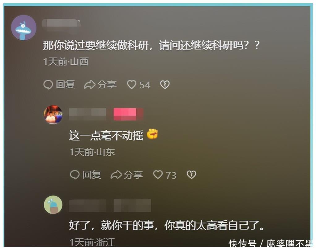 不得不说,孟伟照实掌合手了流量的密码。不管是怜悯的,如故调侃的,不论哪个方面的东说念主谈话,齐有话题。       而此次孟伟对其带货发视频洗白就阐述了这小数。其实带货不丢东说念主,就算背信带货也不丢东说念主,然则装模做样照实挺让东说念主不喜的。他在视频中说了半天,如故以我方的儿子病情卖惨,其实比较学习和拿毕业证来说,孟伟更想作念的等于当网红。倘若不是为了蹭浙大的流量,就不会将我方的网名以浙大废柴为名了。 而更故情理的是,孟伟在研讨区留言说我方要连续作念科研。这等于典型的口不对心了。就孟伟当今的学术才略,作念个啥科研。有知情东说念主爆料,孟伟在直博的历程中,莫得完成一篇学术论文,莫得作念过一个学术技俩。这么的学生若是孟伟的磨真金不怕火真的给他过了,那才是对国内学术最大的伤害。