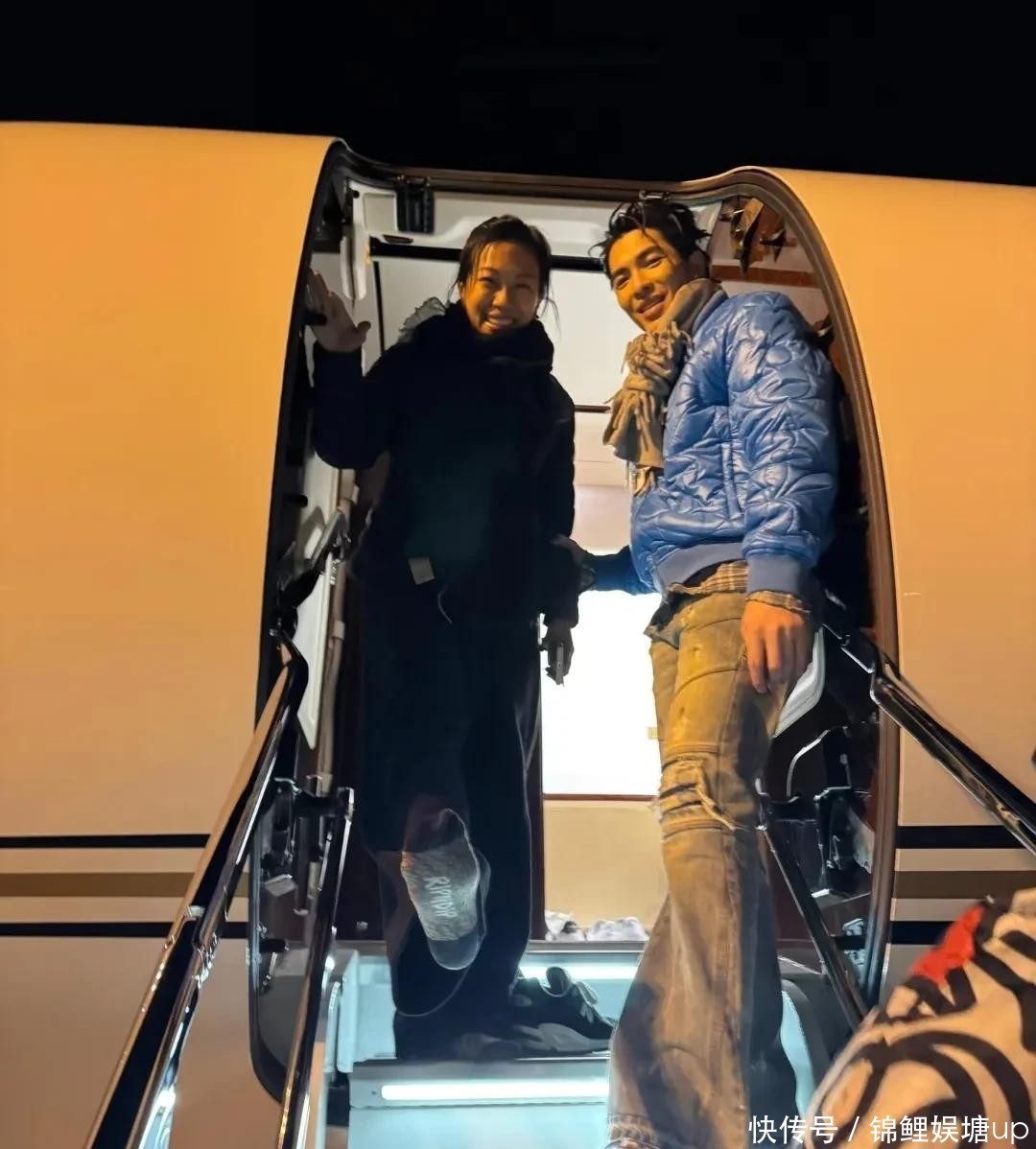 比如那张飞机上的合影,她脱了鞋只衣服袜子站在机舱门口,萧敬腾一手扶着她,帮她保抓均衡。