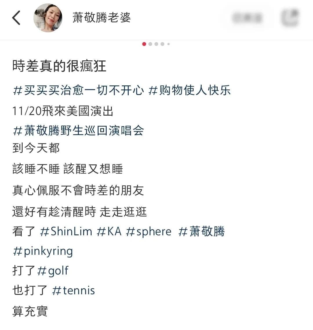 萧敬腾在好意思国献艺的音尘这几天占据了不少文娱版面的头条,但更令东说念主津津乐说念的,可能不是他的唱功有多炸场,而是他和爱妻林有慧的-至人夫人-简单。