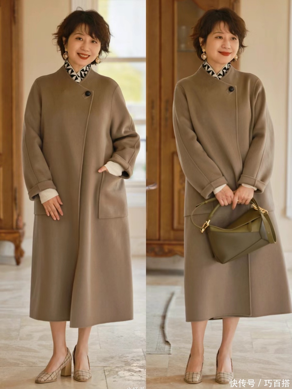 外搭同色系大衣大要羽绒服齐是可以的选拔,为了相投中年女性的穿衣喜好,像博主相似在脖子上挂一条同色系领巾亦然OK的。