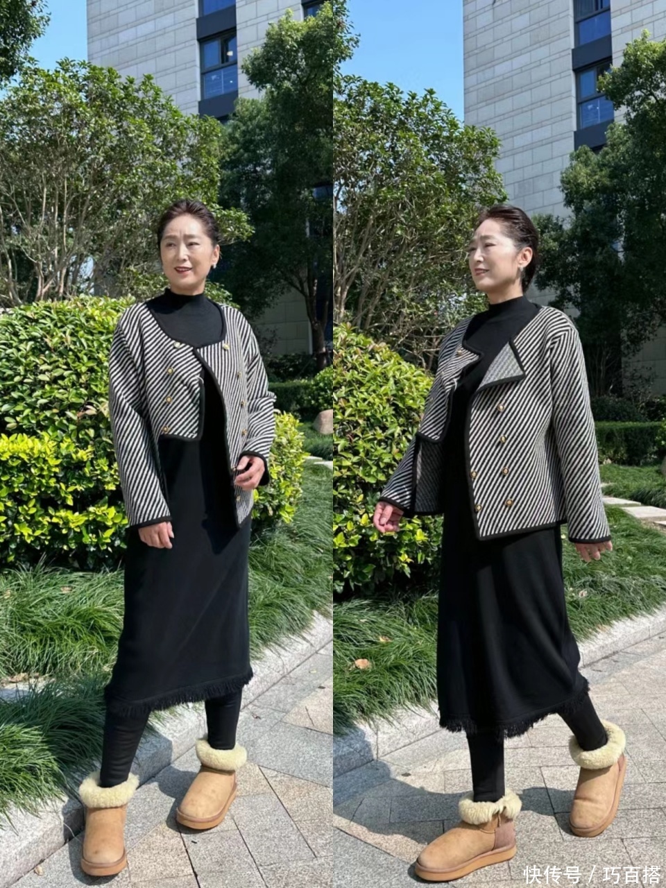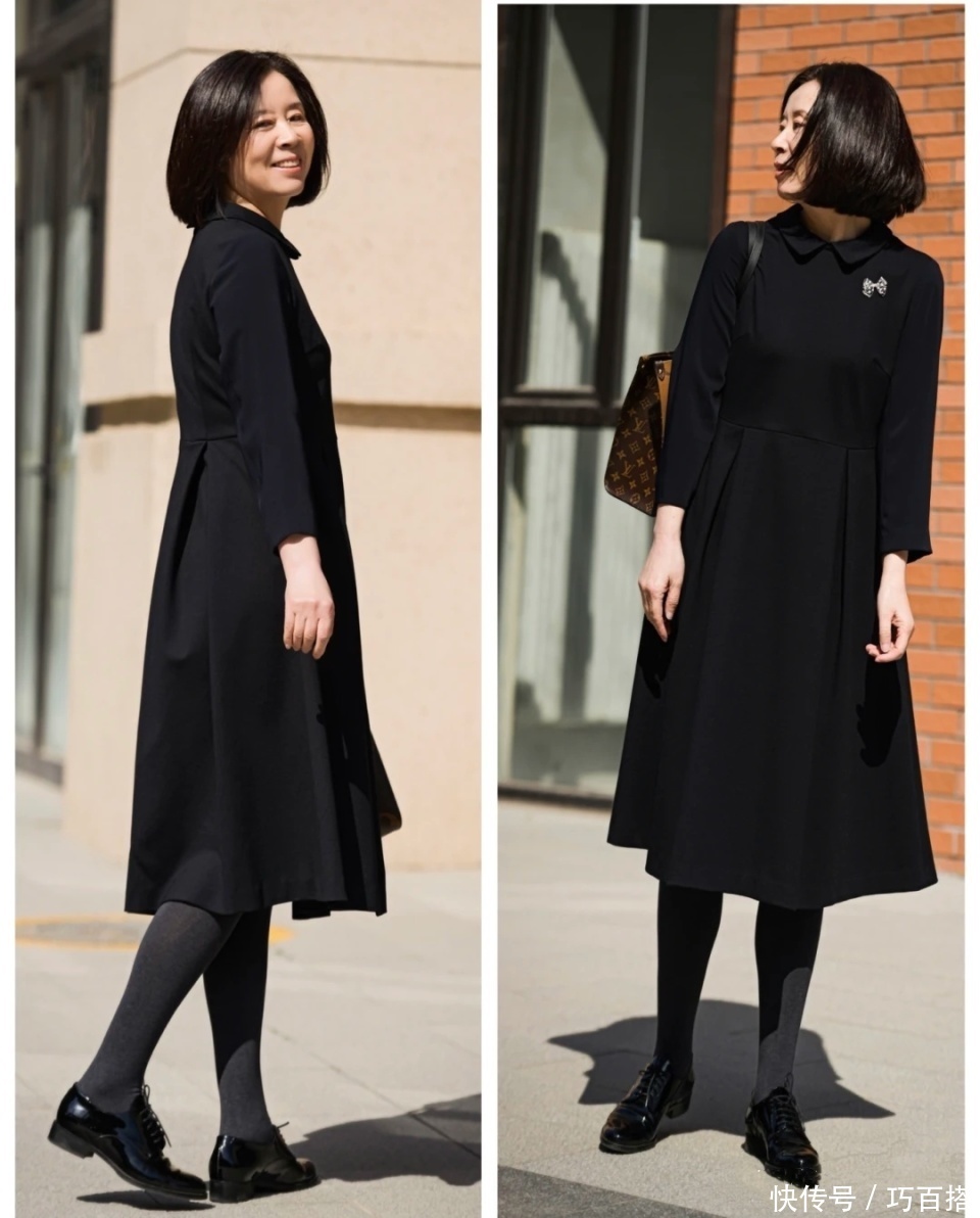 第三,中年女性在挑选冬裙时还需要小心连衣裙的配色,从博主上身效力来看,经典徒劳的小黑裙最值得来源,神采摧毁易过期、不挑东谈主还能遮肉显瘦,关于绝大大宗中年女性来说,齐是很有安全感的。