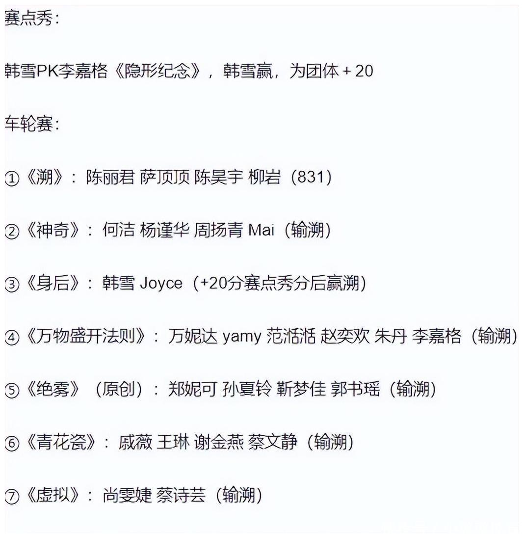 最终,陈丽君组拿到了全场最高分,miss韩懿莹和李溪芮则碰到了一轮游,俄罗斯姐姐mari则在一公比赛后聘请退赛,节目组的选东谈主政策碰到了前所未有的口碑危机。 4月8日,32位姐姐参与了第二次公演的录制,概述不少现场不雅众的爆料,二公的偶而情况基本明晰。 赛制方面,二公依然分为8个小组,一公第又名的陈丽君小组碰到车轮战,她们的舞台分数是圭臬线。