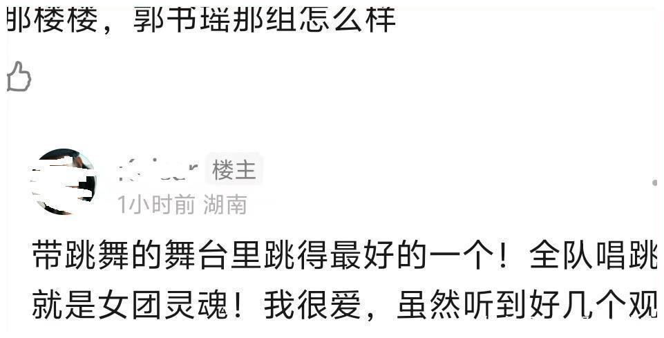 刘忻、苗苗、郭碧婷、袁娅维、张予曦和吴恙唱跳了期间少年团的《楼外楼》,前半部分被舞台置景掩盖是以看不清,但之后走到舞台前边的唱跳很炸,王人舞部分备受好评,但如故没赢过陈丽君组。