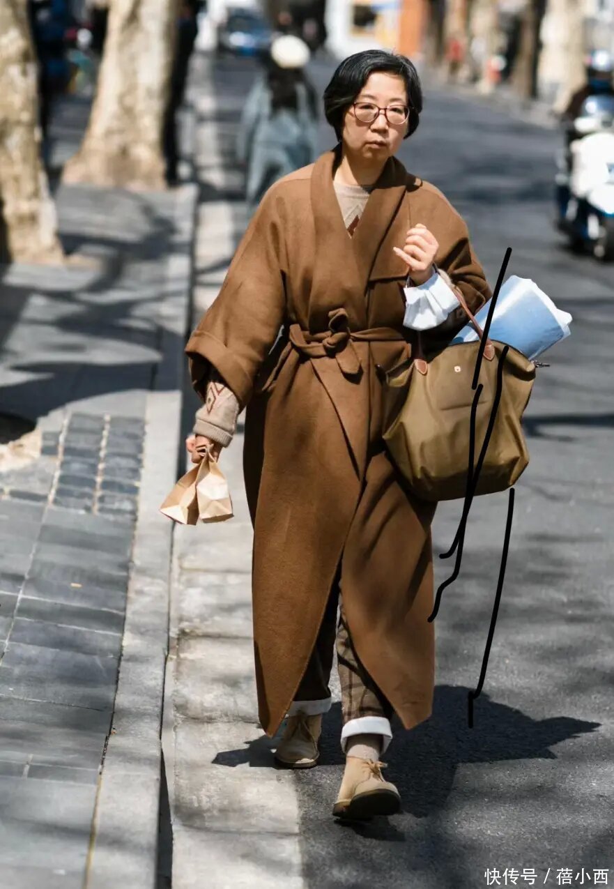 在现时前卫圈中最受接待的即是地面色系,自带浓郁的维捏感,练习郑重且大方,黄黑皮也能穿。上年龄的中年女东谈主无需为我方选购太多花哨的服装,只需这一件经典的棕色大衣就简略承包总共冬天的造型。